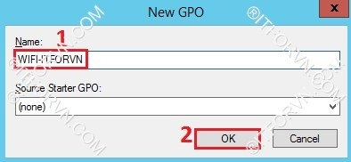 - Hộp thoại New GPO xuất hiện, tại Name: bạn đặt tên cho Policy của RADIUS POLICY nầy, sau đó bạn chọn OK