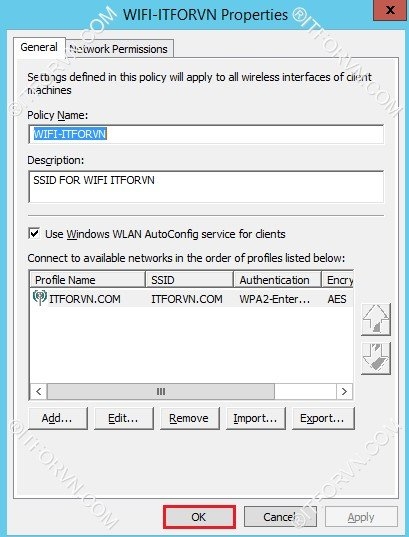 - Và bấm OK tại Hộp thoại WIFI-ITFORVN Properties để hoàn tất.