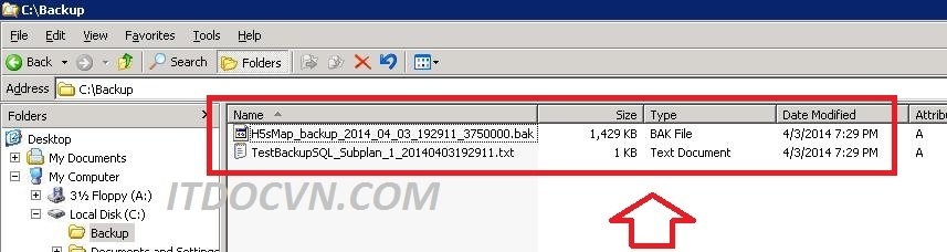 - Ta vào thư mục backup thấy database đã được backup kèm theo log file của quá trình backup. Như vậy đúng thời gian biểu thì việc backup sẽ chạy tự động