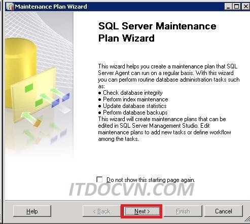 - Cửa sổ Maintenance Plan Wizard xuất hiện bạn chọn Next