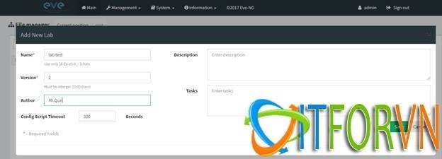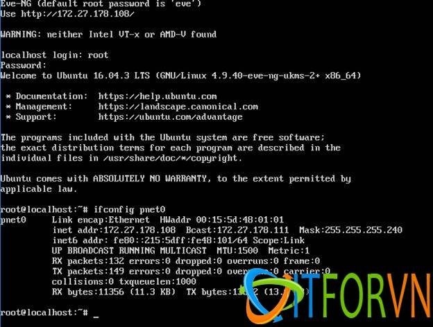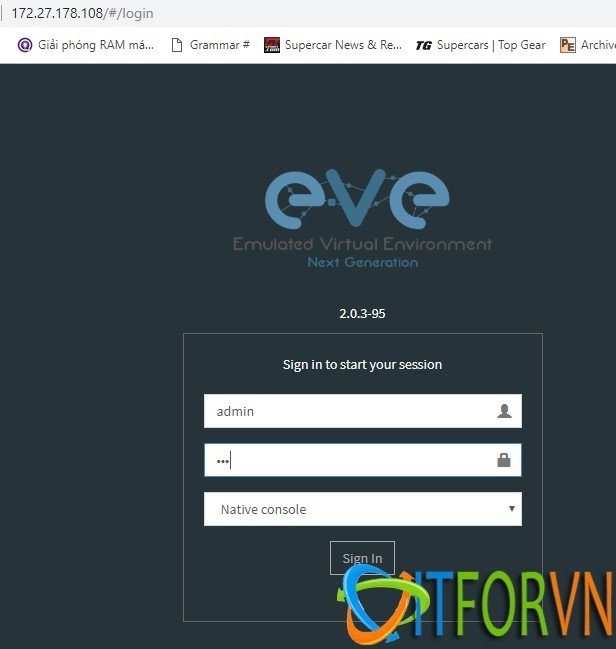Tiến hành log in vào EVE-NG (default account: root/eve).