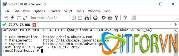 Click on Connect để vào giao diện máy ảo EVE-NG