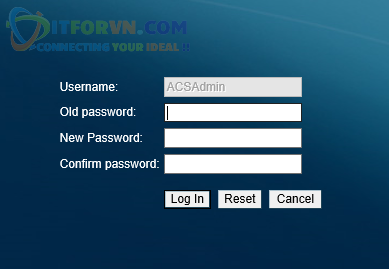 Giao diện ACS. Ta tiến hành Login bằng ACSAdmin/default. Sau đó ACS sẻ yêu cầu thiết lập passwd mới.
