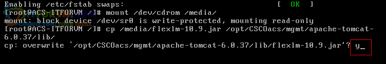 "cp /media/flexlm-10.9.jar /opt/CSCOacs/mgmt/apache-tomcat-6.0.37/lib/"