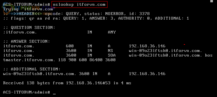 Tiếp theo thực hiện phân giải thử domain “itforvn.vcode.ovh” của AD server.