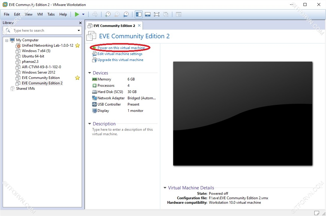- Chạy file EVE Community Edition trên VMWare