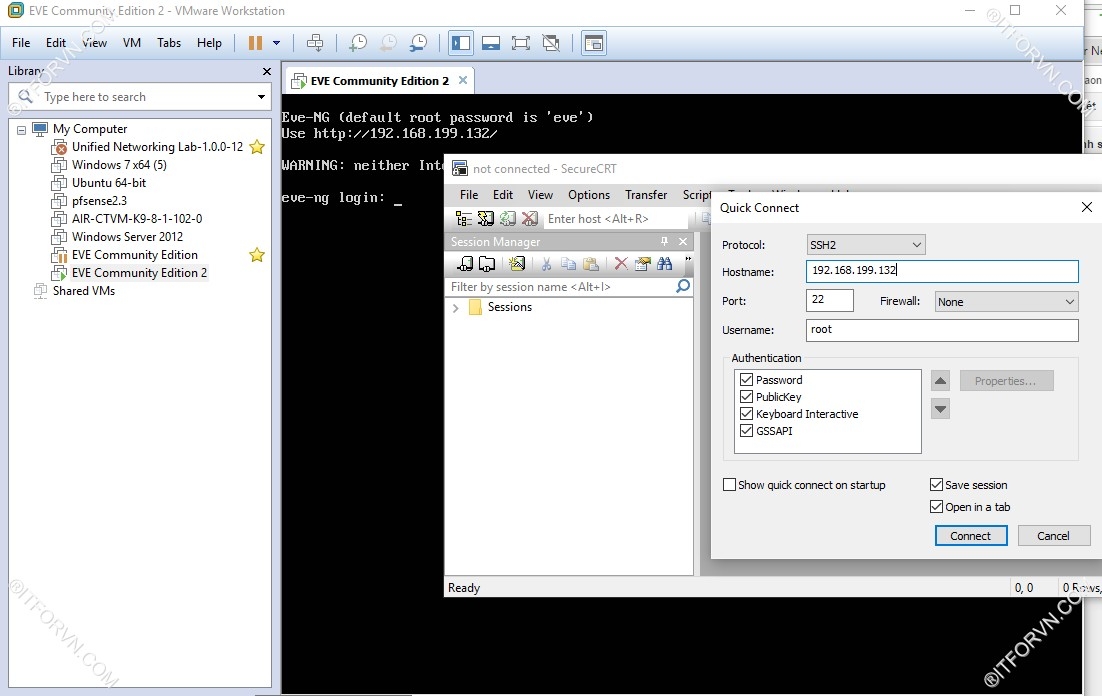 - SSH vào với username : root , Password: eve