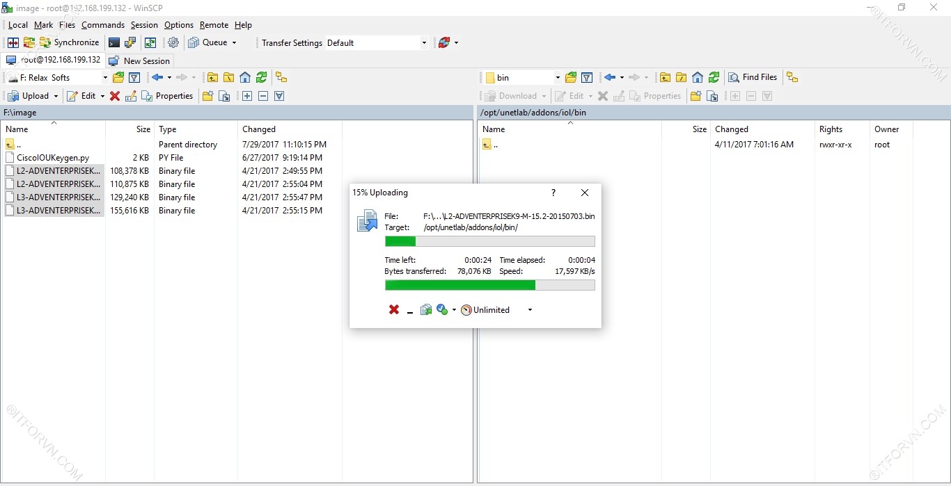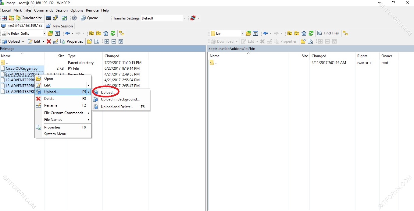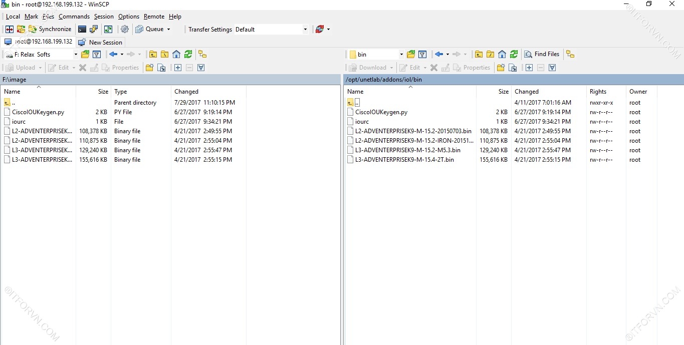 - Có thể dùng WinSCP để upload IOL image