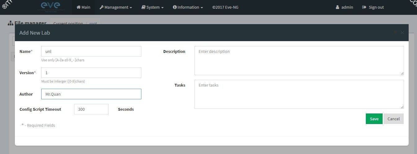 - Eve-ng login : root