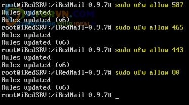 sudo ufw allow 587 sudo ufw allow 465 sudo ufw allow 80 sudo ufw allow 443