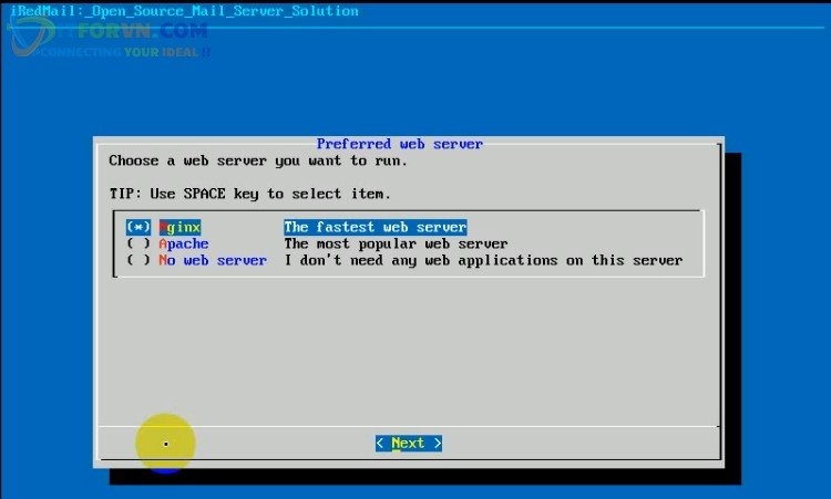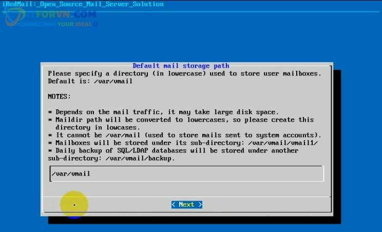 Sau đó bạn bấm chọn Next để tiếp tục quá trình cài đặt iRedMail Server.