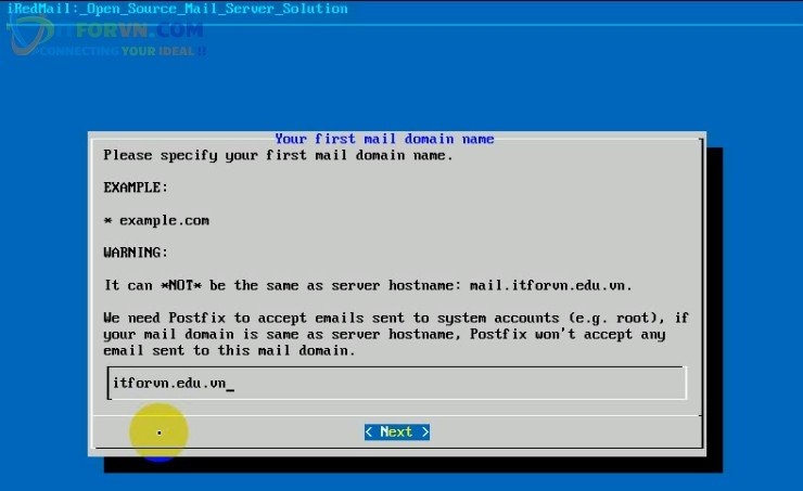 - Bạn điền domain của mình vào. ở đây tô điền : itforvn.edu.vn và bấm Next