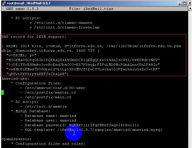 iRedMail đã có script để tự động cấu hình DKIM cho serer của bạn. Và nó đã được tạo bạn chỉ việc tạo DKIN trên DNS management been ngoài là xong. mở iRedMail.tips file dưới thư mụciRedMail-0.9.7