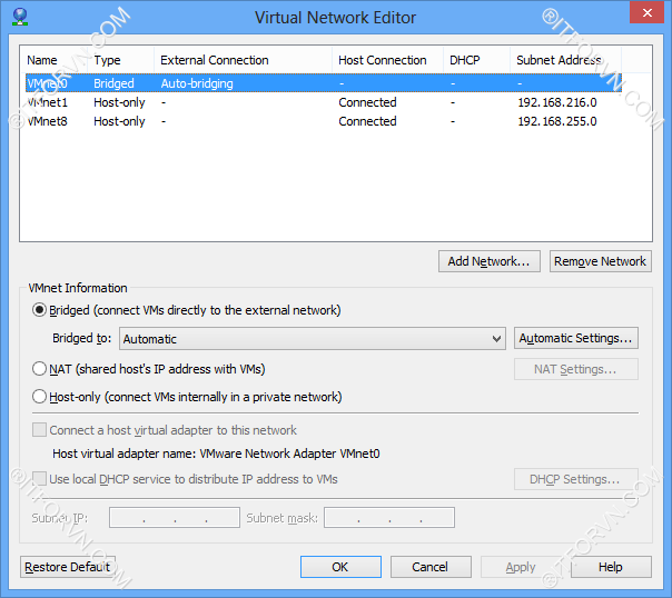 - VMNet0 : Chọn Auto-bridging : sẽ bắt cầu với card mạng máy thật