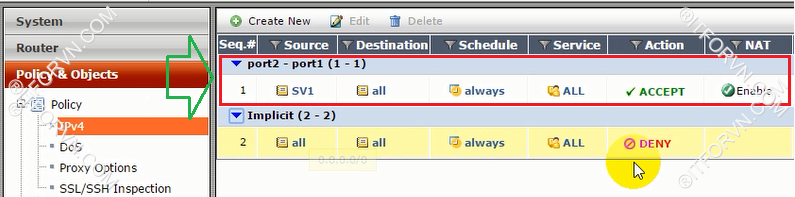 - Tại Policy & Objects> Policy> IPv4