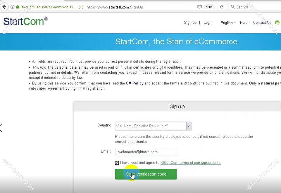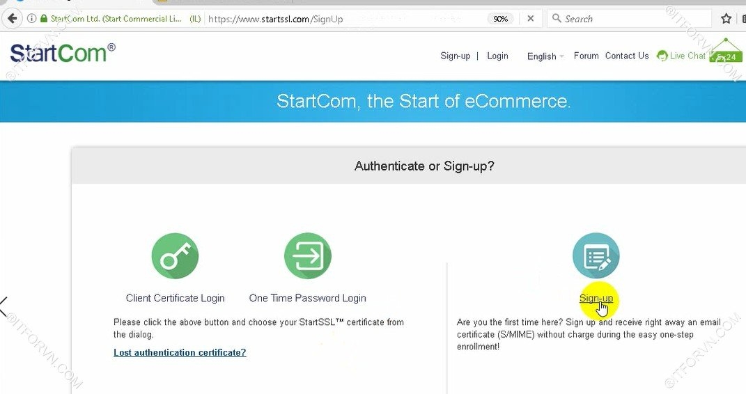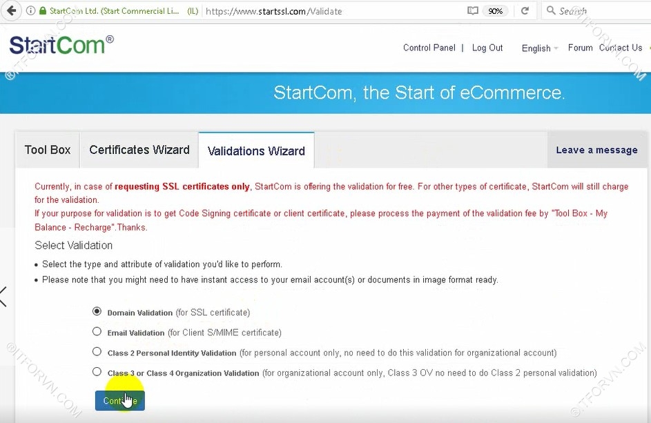 Truy cập vào trang startssl.com > Chọn Start EV Validation Now