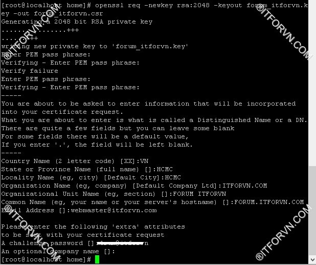 openssl req -newkey rsa:2048 -keyout forum_itforvn.key -out forum_itforvn.csr