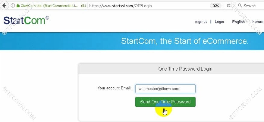- Và điền email mình đã đăng ký đồng thời bấm Send One Time Password. Lúc nầy hệ thống sẽ gửi password về email chúng ta đã đăng ký