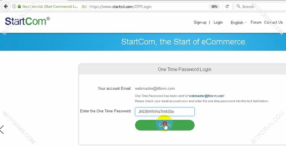 - Check mail lấy password hệ thống vừa gửi và paste vào ô Enter the One Time Password sau đó bấm Login