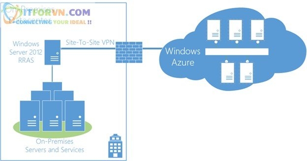 - VPN site to site: Mô hình này là kết nối mạng cho doanh nghiệp. Bảo mật và an toàn cho toàn hệ thống mạng. Thao tác cấu hình phức tạp và cho phép kết nối toàn bộ mạng trong doanh nghiệp tới Windows Azure