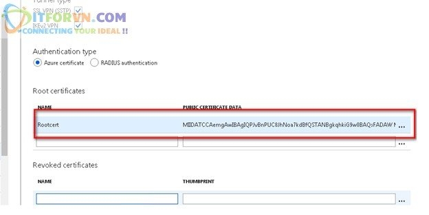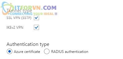 Sử dụng Certificate từ Windows Azure: Khi mà sử dụng certificate của Windows Azure chứng thực, thì certificate client được thể hiện như là một user đang chứng thực kết nối. Client certificate sẽ được trust từ root certificate và được cài đặt trên mõi máy trạm. Việc xác thực certificate client được thực hiện bằng VPN getway và trong suốt quá trình thành lập kết nối VPN. Root certificate yêu cầu phải có hiệu lực và phải được upload lên Azure. Chức thực sử dụng user của AD. AD cho phép từng user có khả năng kết nối đến Azure, nhưng nó yêu cầu phải có Radius server kết nối với AD. Radius server phải được triển khai trong on-premise hoặc có thể triển khai trên Azure VMnet. Trong suốt quá trình chứng thực, VPN getway sẽ thực hiện việc cho phép đi qua và chuyển tiếp những message chứng thực giữa Radius server và thiết bị kết nối. Chính vì thế Radius server đóng vai trò quan trọng trong việc kết nối. Radius server cũng có thể tích hợp với AD Certificate Services. Chính vì thế có thể thực hiện cách Radius server tích hợp với AD Certificate trong môi trường của bạn để có thể tạo ra mợt P2P certificate cho việc chứng thực VPN Azure. Khi đó không cần phải upload certificate lên Azure nữa.