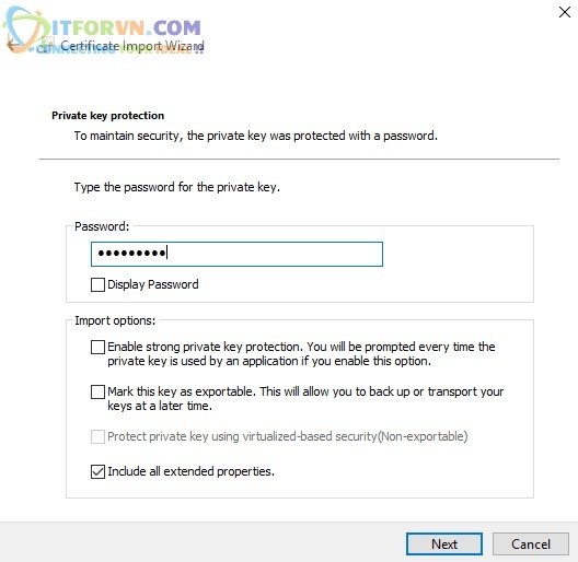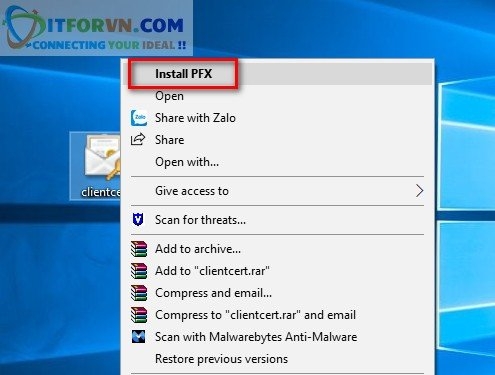 Nhập vào mật khẩu của Clientcert ban đầu đã tạo