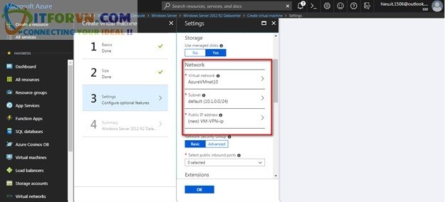 Chọn vào Azure Virtual Network vừa tạo cho VM.