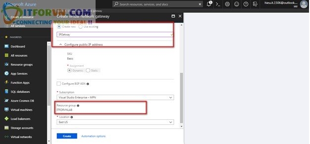 Tiếp tục tạo mới IP dùng cho IPGETWAY public, chọn tạo chung Resource sau đó nhấn OK để thực hiện quá trình khởi tạo: