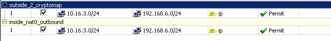 - Tương tự như vậy ta kiểm tra đã permit cho outside và inside chưa( mặc định outside_cryptomap được tự động tạo khi khởi tạo Connection Profile).