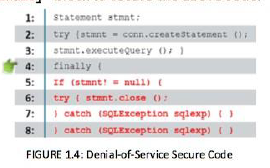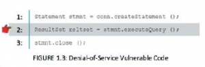 Vulnerable****Code: Dưới đây là đoạn mã dễ bị tấn công cho phép kẻ tấn công thực hiện tấn công từ chối dịch vụ, vì nó không giải phóng được tài nguyên kết nối.