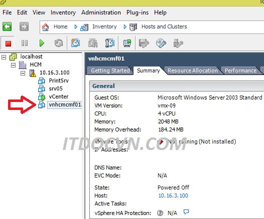 - Máy vật lý đã được convert lên vCenter thành công.
