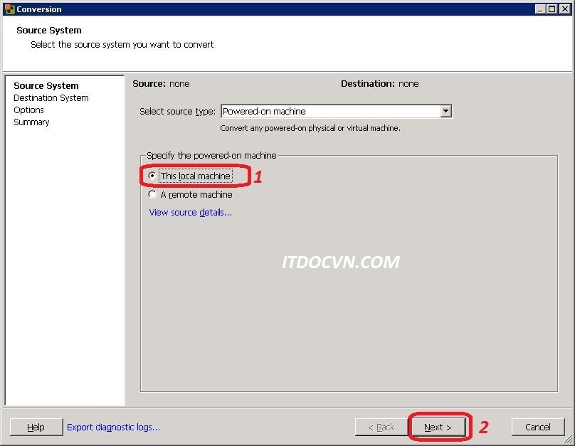- Select source type: chọn Powered-on machine