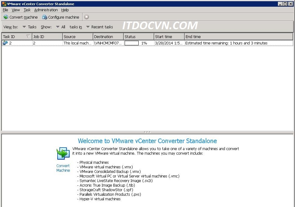 - Cách 2 bạn clone ra 1 máy khác có nghĩa là bạn chuyển từ hệ điều thành thật thành ảo. Nếu hệ thống bạn có sẳn hệ thống ảo hóa của vmware (esxi) thì bạn có thể convert lên vCenter. Nếu không bạn có thể convert lên tạm vmware workstation chạy tạm trong lúc chờ đợi phương án khả thi hơn. Trong bài viết nầy mình sẽ hướng dẫn cách convert lên máy vật lý lên ảo hóa. I.Convert máy vật lý lên vmware workstation: