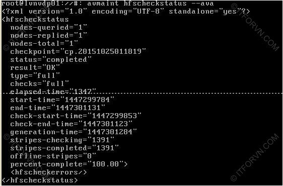 - Bước 10(Step 10): Sau khi hoàn tất bạn kiểm tra lại kết quả của integrity check. ở đây ta thấy status là "Complete", Result là "OK" nghĩa là việc fix lỗi cơ bản hoàn tất.