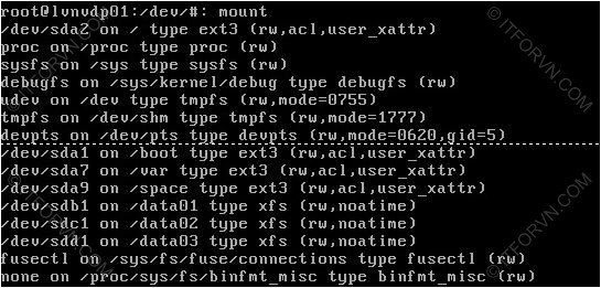 - Bước 2(Step 2): bạn gõ lệnh mount để xem 3 phân vùng data1,2,3 được lưu ở đâu.
