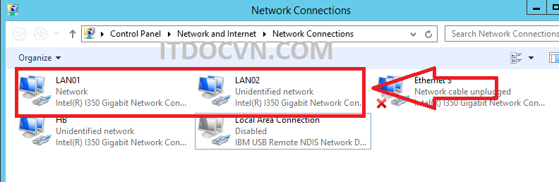 - Và đặt tên cho 2 NIC nầy là LAN01 và LAN02