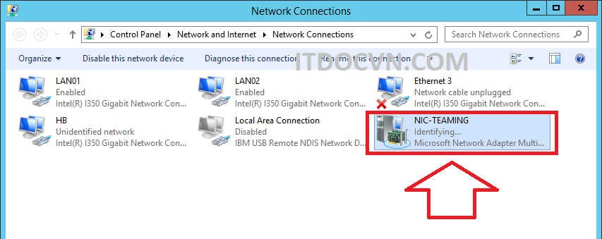 - NIC Team đã thành công. Tuy nhiên tới đây thôi vẫn chưa xong, vì lúc nầy hệ thống sẽ tạo ra 1 NIC mới.