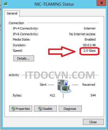 - Ta thấy băng thông của 2 card mạng đã được gộp lại.