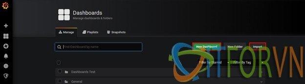 Tại đây bạn có thể chọn New Dashboard để tạo mới (làm họa sĩ vẽ dashboard) hoặc Import (sử dụng những dashboard có sẳn rồi edit lại cho phù hợp). Tại đây chúng ta chọn Import.