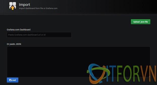 Tiếp tục chọn vào Upload .json file để import dashboard