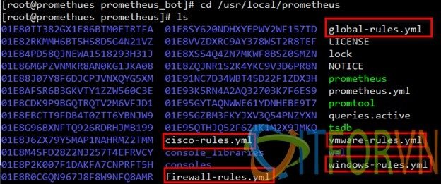 Bước 05: Tạo các rule alert trong prometheus. Để tạo alert trong prometheus, bạn cần phải định nghĩa ra các rule. Tạo các file rule trong thư mục promethues với format sau: rulename.yml