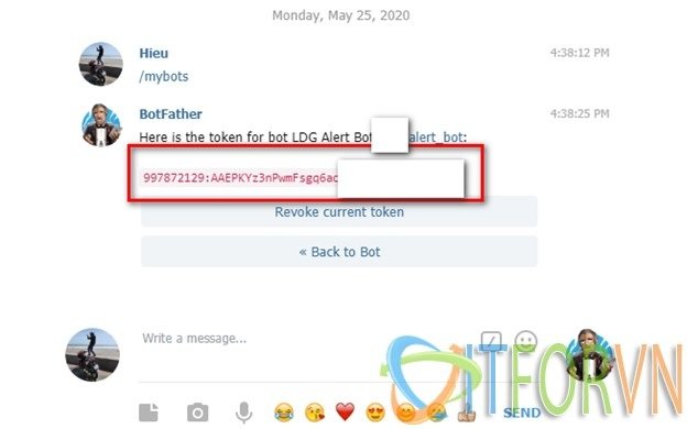 Khi tạo telegram bot mình sẽ ghi lại token của con bot, dùng để điền vào file config.yaml mà chúng ta tạo sau đó.