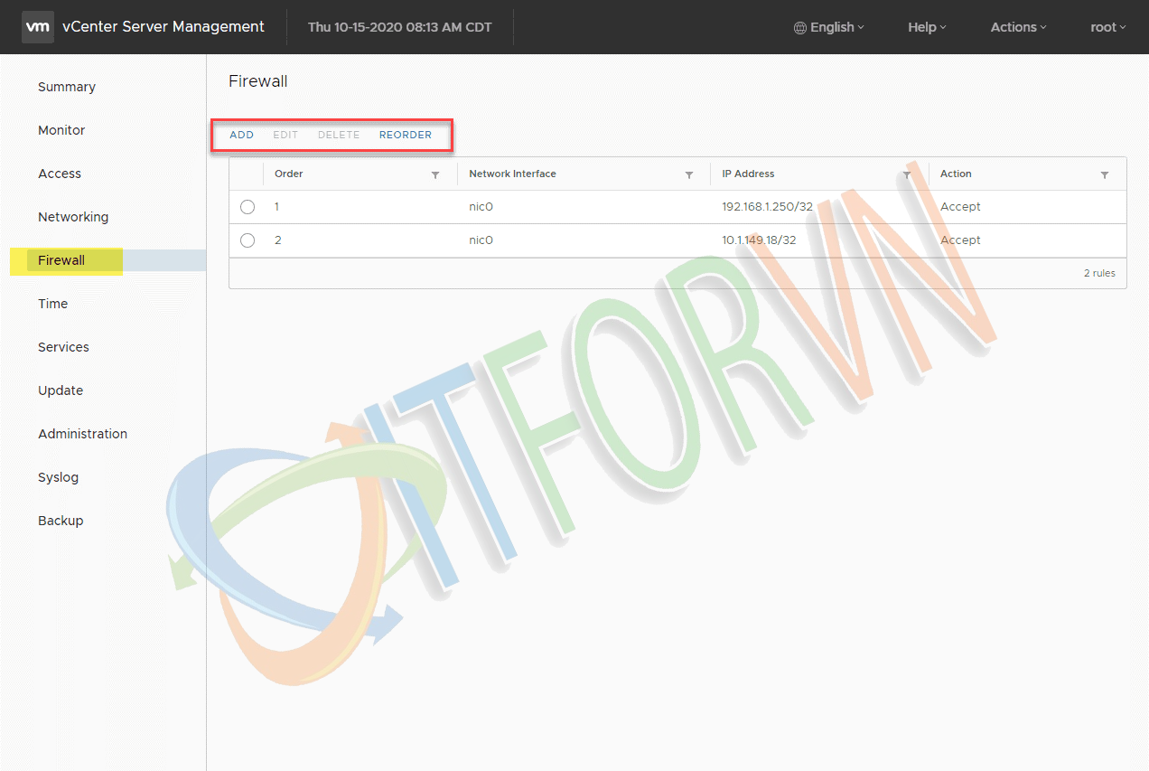 Sử dụng tường lửa vCenter Server để chặn lưu lượng truy cập từ máy chủ và mạng, đây là một tính năng mới với vCenter Server 7.0, giờ đây bạn có thể tăng thêm hiệu quả công tác phân luồng mạng, kết hợp với tường lửa vCenter, có thể giúp phân chia luồng lưu lượng và hạn chế quyền truy cập khi cần từ các mạng khác nhau.