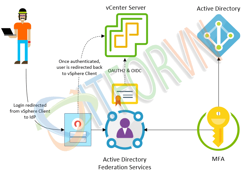 Như đã đề cập phía trên, để giảm thiểu rủi ro từ các cuộc tấn công vào môi trường máy chủ, chúng ta không nên cấp quyền truy cập cấp cao vào vSphere đối với tài khoản được cấp từ Active Directory trừ khi các tài khoản này đã được kích hoạt xác thực đa yếu tố. Điểm mới với vSphere 7.0 là Identity Federation cho phép cung cấp quyền truy cập MFA hiệu quả cho vSphere.