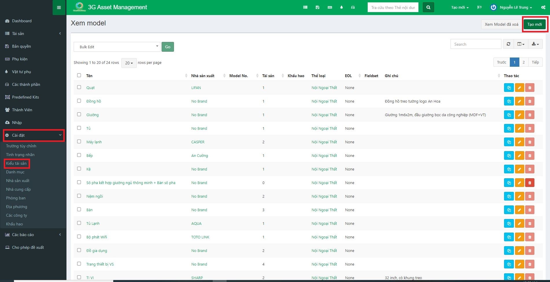 Cài đặt -> Kiểu tài sản -> Tạo mới