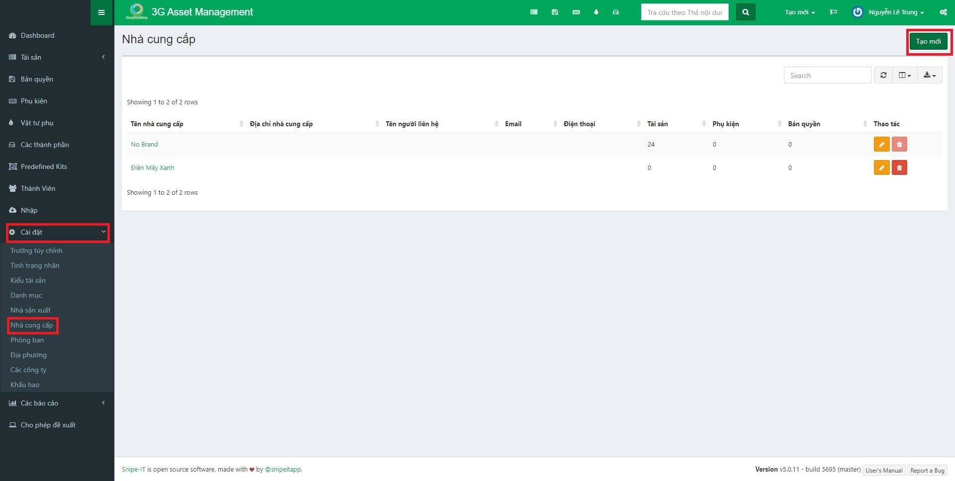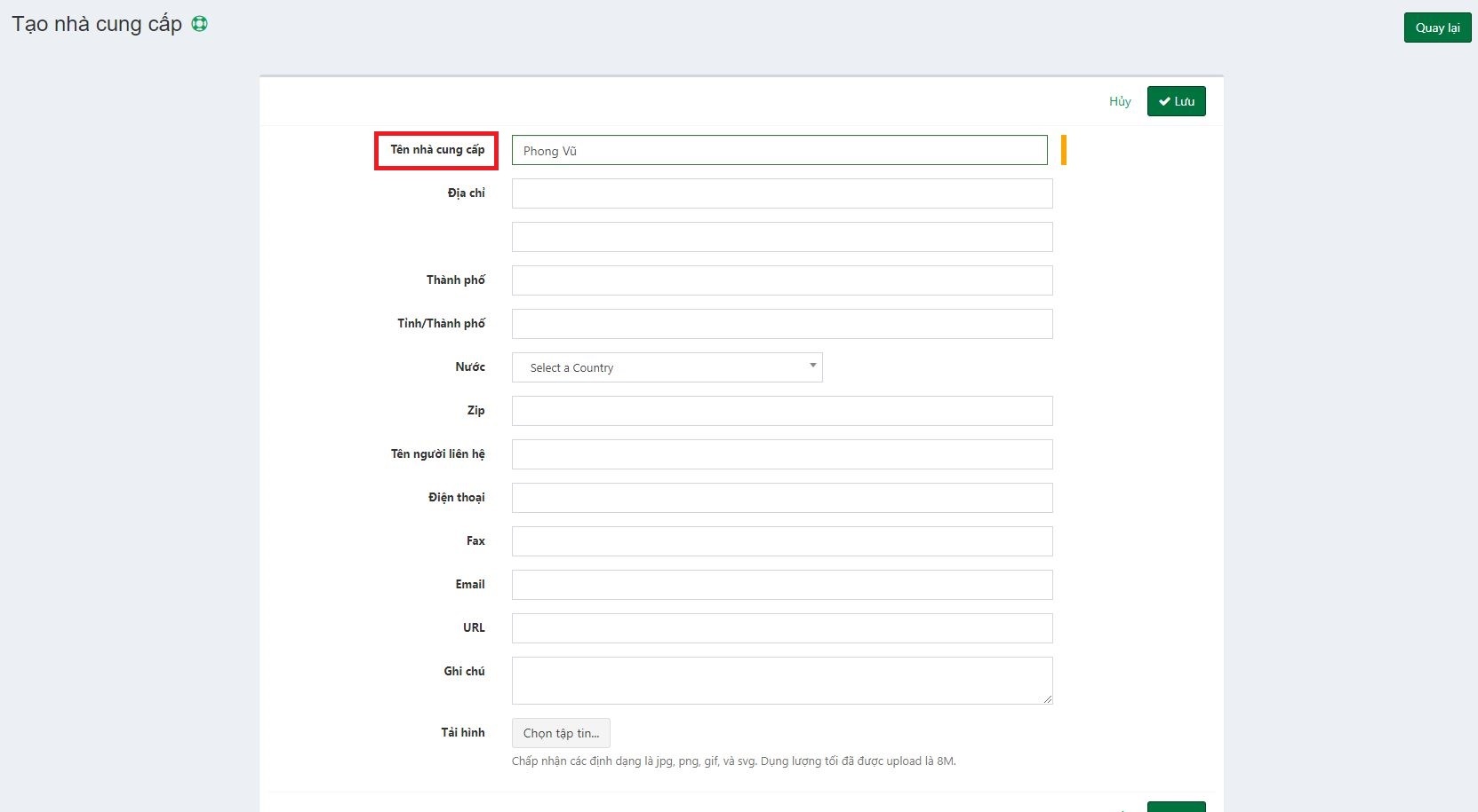 Tạo đơn vị cung cấp thiết bị - ở đây sẽ là Phong Vũ