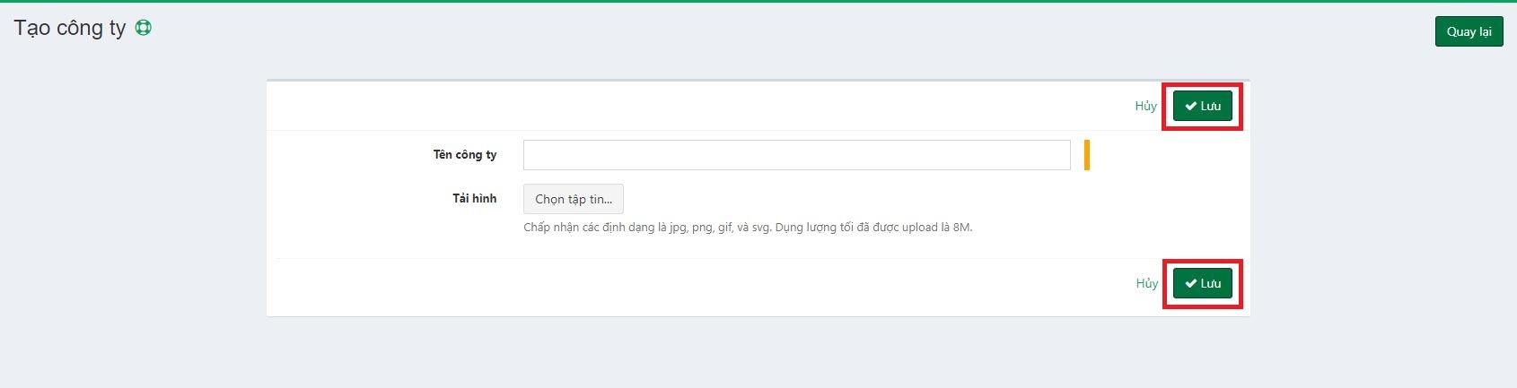 Nhập tên công ty, thêm logo nếu có (nên có để nhìn cho chuyên nghiệp xíu) -> Lưu