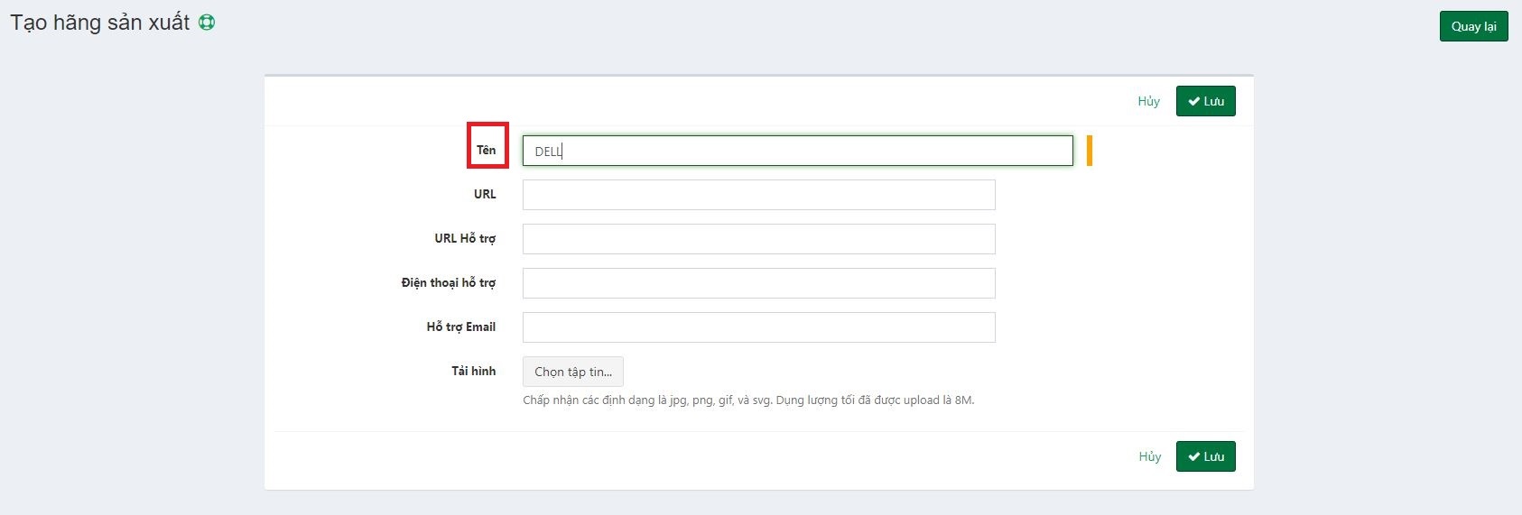 Điền tên hãng thiết bị (DELL) -> Lưu