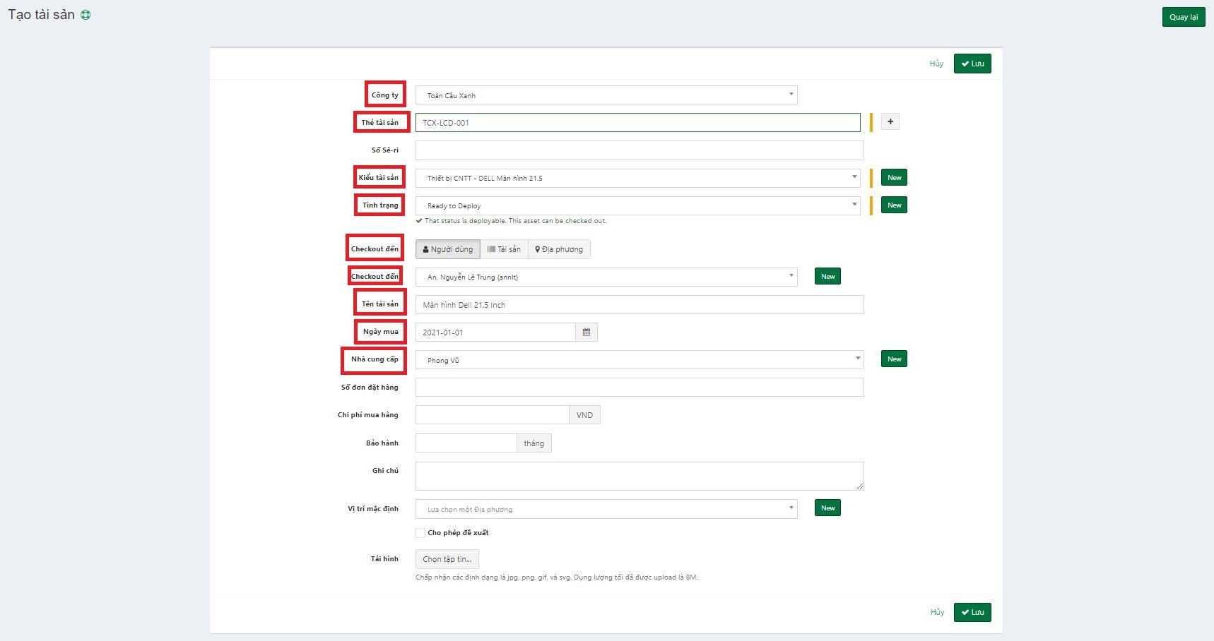 Chào các bạn hiện mình đang setup để quản lý tài sản cho công ty nên mình sẽ kết hợp hướng dẫn sử dụng SnipeIT cơ bản cho các bạn trả lời câu hỏi: Phải làm gì với cái này sau khi cài lên đây? (Thấy khá nhiều bạn sau khi cài lên thì ngồi nhìn thôi không biết bắt đầu từ đâu cả). Bài hướng dẫn sử dụng SnipeIT này dưa theo phiên bản sử dụng tiếng việt nha (nên đừng hỏi sao có mấy chữ ghi khó hiểu quá, do cộng đồng dịch chỉ hỗ trợ đến thế thôi, bạn có thể chuyển qua tiếng anh đọc cho dễ hiểu nghĩa, do mình bàn giao cho hành chính công ty toàn mấy chị em xài tiếng việt là chính nên ko để tiếng anh được). Đầu tiên chúng ta cần xem các trường bắt buộc và nên có của 1 tài sản là những gì: