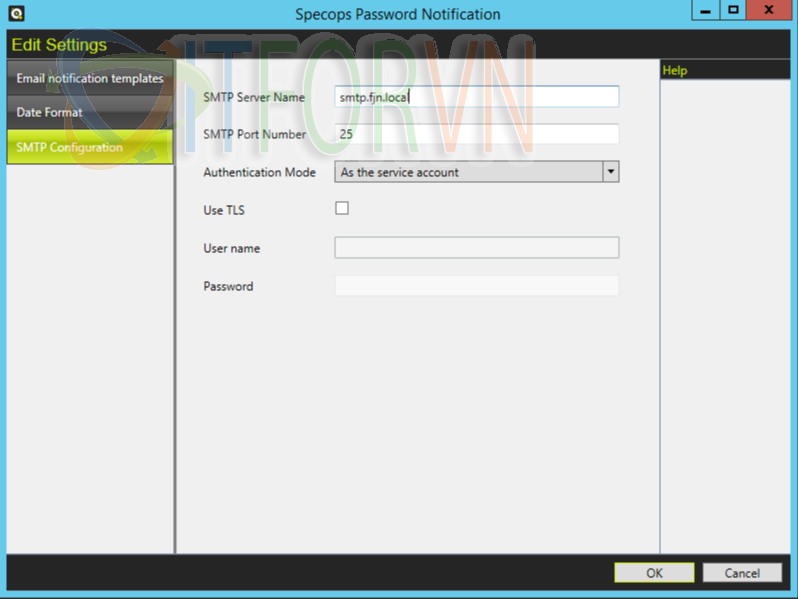 SMTP Configuration cho phép định cấu hình máy chủ SMTP để gửi email.
